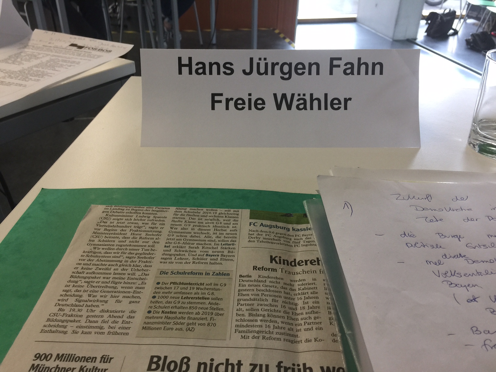 Diskussionsrunde in der Fachoberschule / Berufsoberschule in Aschaffenburg